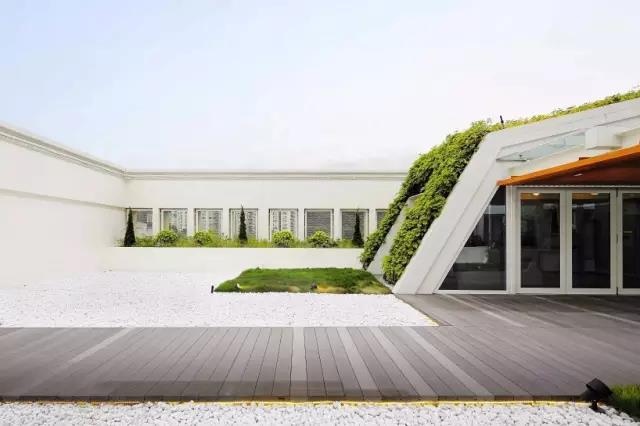 外立面的植物與地面的庭院連成巨大的花園系統